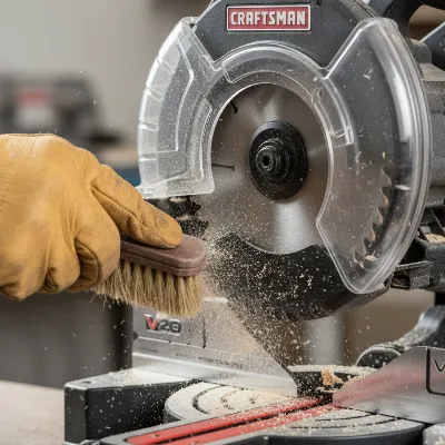 Regular maintenance is key to keeping your mini miter saw in optimal condition. After each use, especially when cutting materials that produce fine dust or chips (like plastic or soft metals), clean the saw thoroughly. Use a brush or compressed air to remove debris from the blade, motor vents, and moving parts. Ensure the fence and table are free of sawdust to maintain cutting accuracy. Periodically check all fasteners for tightness and lubricate any moving parts according to the manufacturer’s instructions. Proper maintenance will extend the life of your saw and ensure consistent performance.